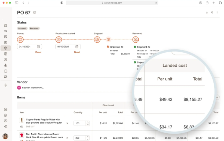 - Manage POs & costs in one dashboard