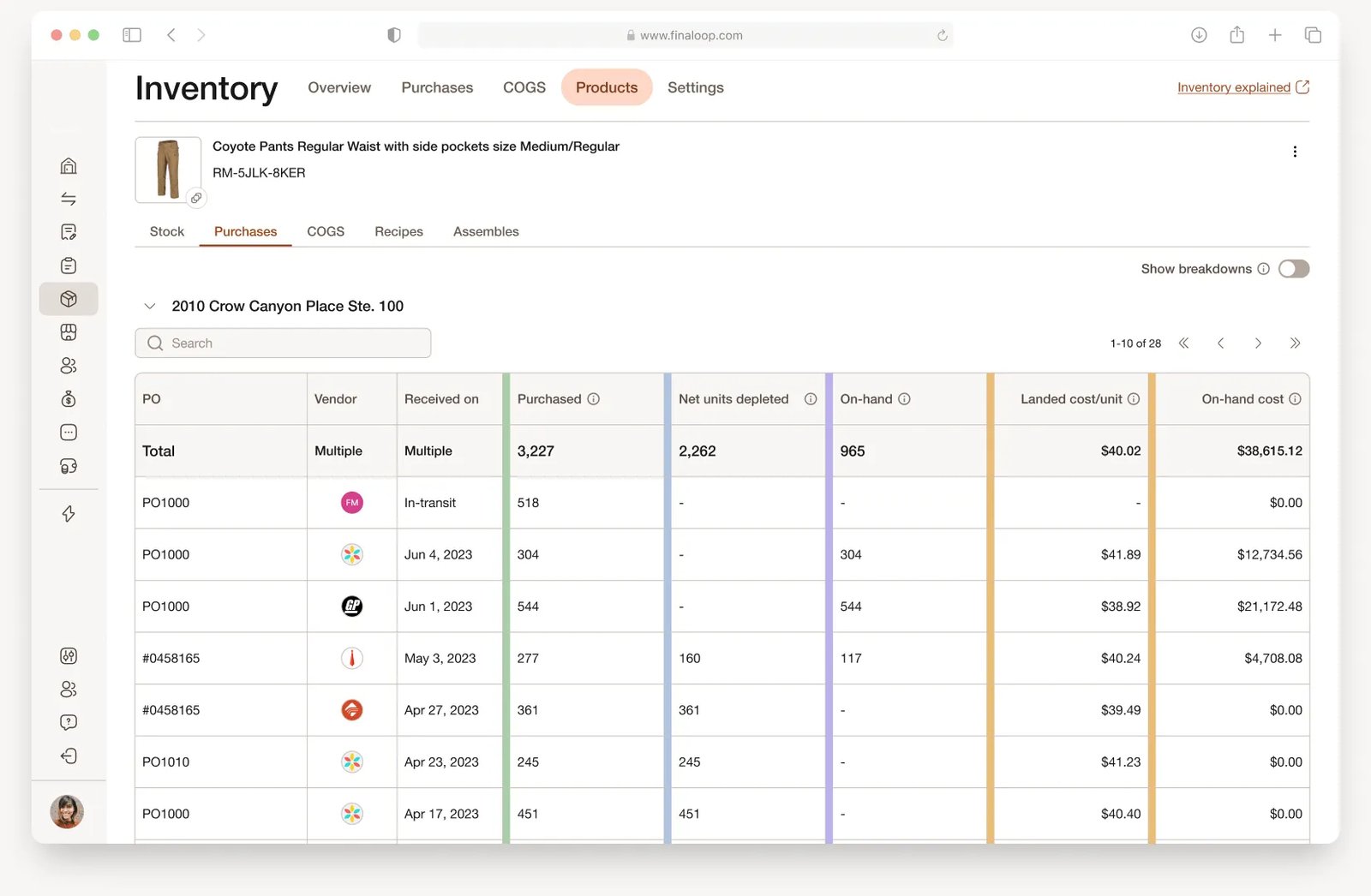 - Easily track cost per unit across warehouses, whether you are selling DTC, ecommerce, retail, or multichannel